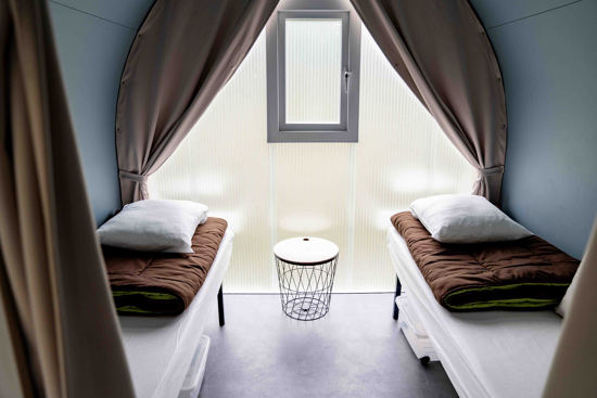 1 bedroom with 2 benches for 1 person