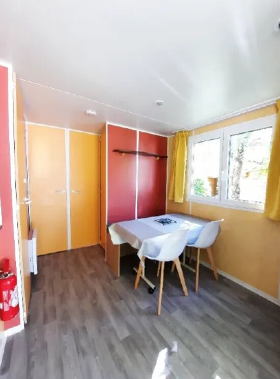 Kitchen area with fridge/freezer, microwave, coffee maker, 2 burner gas stove, Dishes and kitchen utensils