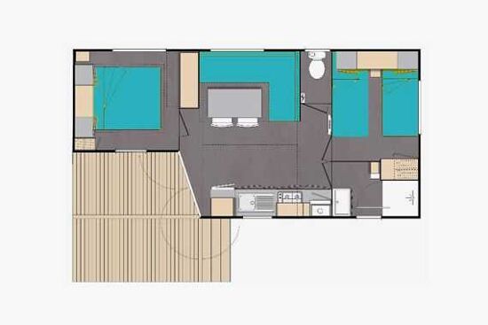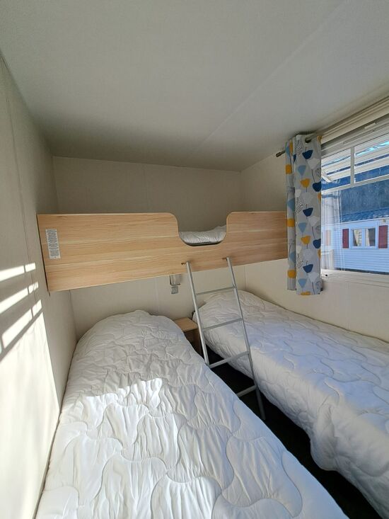 Deux chambres : 1 lit 2 places 160X190cm et 3 lits de 1 personne 80x190cm dont un pour enfant de moins de 40kg
